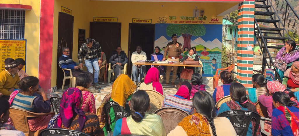 पौड़ी/श्रीनगर गढ़वाल। जनपद पौड़ी गढ़वाल में अपराधों की रोकथाम एवं सामाजिक सुरक्षा को सुदृढ़ करने के उद्देश्य से पुलिस प्रशासन द्वारा निरंतर जन-जागरूकता अभियान चलाए जा रहे हैं। इसी क्रम में वरिष्ठ पुलिस अधीक्षक पौड़ी गढ़वाल के निर्देशानुसार तथा उच्चाधिकारियों के मार्गदर्शन में चौकी पाबों कोतवाली पौड़ी क्षेत्रांतर्गत छानी गांव में एक व्यापक जागरूकता कार्यक्रम आयोजित किया गया। इस अभियान का नेतृत्व चौकी प्रभारी पाबों उप निरीक्षक मुकेश गैरोला द्वारा किया गया। उनके साथ हेड कांस्टेबल सुनील हिंदवाल भी अभियान में सक्रिय रूप से उपस्थित रहे। इस दौरान गांव की महिला एवं पुरुष ग्रामीणों को वर्तमान समय में तेजी से बढ़ रहे साइबर अपराधों,महिला एवं बाल अपराधों तथा नशीले पदार्थों के दुष्प्रभावों के संबंध में विस्तार से जानकारी दी गई। पुलिस टीम ने ग्रामीणों को बताया कि साइबर ठगी,फर्जी कॉल,संदिग्ध संदेश एवं अनजान लिंक से सतर्क रहना अत्यंत आवश्यक है। साथ ही यह भी समझाया गया कि गांव में कोई भी बाहरी व्यक्ति या फेरी लगाने वाला यदि संदिग्ध रूप से दिखाई दे,तो उसकी सूचना तत्काल पुलिस को दी जाए,ताकि ग्रामीण क्षेत्रों में किसी भी प्रकार की आपराधिक घटना को समय रहते रोका जा सके। जागरूकता कार्यक्रम के दौरान ग्रामीणों को पुलिस आपातकालीन सेवा नंबर 112 एवं उत्तराखंड पुलिस मोबाइल एप के उपयोग की जानकारी दी गई तथा किसी भी प्रकार की समस्या होने पर बिना संकोच पुलिस से संपर्क करने के लिए प्रेरित किया गया। साइबर अपराधों की रोकथाम को लेकर यह भी बताया गया कि किसी भी प्रकार की धोखाधड़ी,अनजान कॉल या संदेश प्राप्त होने पर तुरंत साइबर आपातकालीन हेल्पलाइन नंबर 1930 पर सूचना देना आवश्यक है। पुलिस अधिकारियों ने कहा कि जागरूकता ही अपराधों से बचाव का सबसे प्रभावी माध्यम है और पुलिस भविष्य में भी इस प्रकार के जन-जागरूकता अभियानों को निरंतर जारी रखेगी,ताकि समाज को सुरक्षित एवं अपराधमुक्त बनाया जा सके।