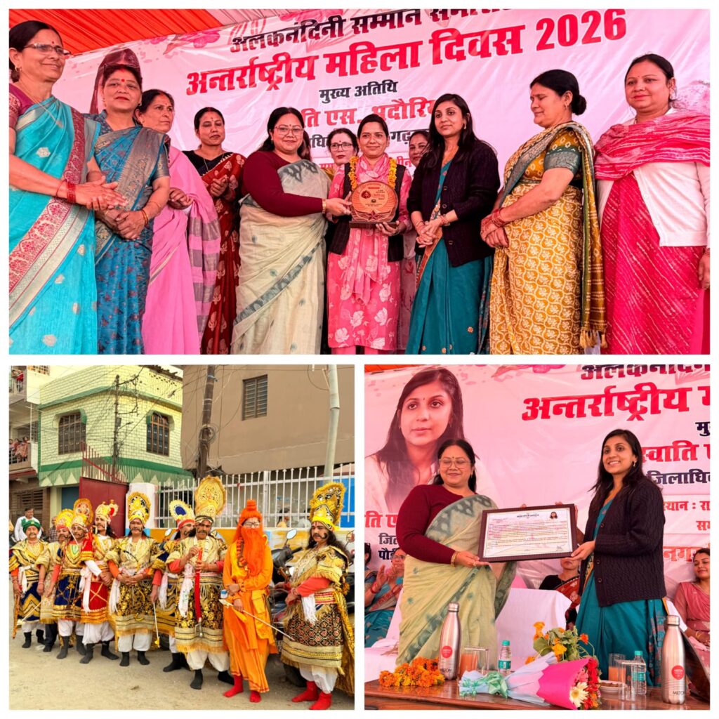 श्रीनगर गढ़वाल। अंतर्राष्ट्रीय महिला दिवस की पूर्व संध्या पर नगर निगम श्रीनगर द्वारा आयोजित अलकनंदनी सम्मान समारोह में नगर क्षेत्र में विभिन्न क्षेत्रों में उल्लेखनीय योगदान देने वाली 31 प्रेरणादायी महिलाओं को सम्मानित किया गया। इस अवसर पर सामाजिक सेवा,शिक्षा,स्वास्थ्य,खेल,प्रशासन,स्वरोजगार,पर्यावरण संरक्षण तथा महिला सशक्तिकरण के क्षेत्र में उत्कृष्ट कार्य करने वाली महिलाओं को प्रशस्ति पत्र प्रदान कर उनका अभिनंदन किया गया। कार्यक्रम में मुख्य अतिथि के रूप में उपस्थित जिलाधिकारी पौड़ी स्वाति एस भदौरिया को महापौर आरती भण्डारी द्वारा अलकनंदनी प्रशस्ति पत्र भेंट कर सम्मानित किया गया। इसके साथ ही नगर को स्वच्छ और सुंदर बनाए रखने में महत्वपूर्ण भूमिका निभाने वाली महिला पर्यावरण मित्रों को भी विशेष रूप से सम्मानित किया गया। सम्मान समारोह के उपरांत मां नंदा महिला रामलीला मांगल योग समिति द्वारा प्रस्तुत महिला चक्रव्यूह नाट्य मंचन कार्यक्रम का मुख्य आकर्षण रहा। इस प्रभावशाली प्रस्तुति के माध्यम से समाज में महिलाओं की चुनौतियों, संघर्षों और उनकी शक्ति को दर्शाया गया। दर्शकों ने इस मंचन को खूब सराहा और इसे महिला सशक्तिकरण का प्रेरणादायक संदेश बताया। कार्यक्रम को संबोधित करते हुए जिलाधिकारी स्वाति एस.भदौरिया ने कहा कि अंतर्राष्ट्रीय महिला दिवस केवल उत्सव का दिन नहीं,बल्कि महिलाओं के अधिकार,सम्मान और समान अवसरों के प्रति समाज की प्रतिबद्धता को मजबूत करने का अवसर है। उन्होंने कहा कि आज महिलाएं शिक्षा,प्रशासन,विज्ञान,खेल,उद्यमिता और सामाजिक नेतृत्व सहित हर क्षेत्र में अपनी महत्वपूर्ण भूमिका निभा रही हैं। उन्होंने कहा कि किसी भी समाज और राष्ट्र की प्रगति महिलाओं की सक्रिय भागीदारी के बिना संभव नहीं है। इसलिए महिलाओं को शिक्षा,स्वास्थ्य,सुरक्षा और आर्थिक आत्मनिर्भरता से जोड़ना अत्यंत आवश्यक है। सरकार द्वारा संचालित विभिन्न योजनाओं के माध्यम से महिलाओं को आत्मनिर्भर बनाने का लगातार प्रयास किया जा रहा है। महापौर आरती भण्डारी ने कहा कि नगर निगम श्रीनगर महिलाओं के सम्मान और उनके सशक्तिकरण के लिए निरंतर प्रयासरत है। उन्होंने कहा कि महिलाओं को स्वरोजगार,स्वच्छता,सामाजिक जागरूकता और सामुदायिक विकास से जोड़ने के लिए विभिन्न स्तरों पर योजनाएं संचालित की जा रही हैं। ऐसे सम्मान समारोह समाज में सकारात्मक वातावरण तैयार करते हैं और महिलाओं को अपनी प्रतिभा के साथ आगे बढ़ने की प्रेरणा देते हैं। नगर आयुक्त नूपुर वर्मा ने कहा कि नगर की स्वच्छता,सामाजिक जागरूकता और सामुदायिक विकास में महिलाओं की भूमिका अत्यंत महत्वपूर्ण है। विशेष रूप से महिला पर्यावरण मि