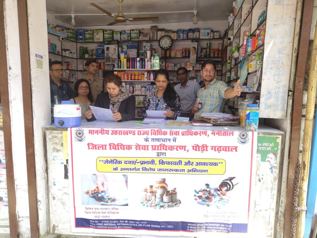 पौड़ी/श्रीनगर गढ़वाल। सचिव जिला विधिक सेवा प्राधिकरण पौड़ी नाजिश कलीम के नेतृत्व में मंगलवार को सुरक्षित दवा सुरक्षित जीवन एवं जेनेरिक ड्रग्स-इफेक्टिव,इकोनॉमिकल एंड एसेंशियल अभियान के अंतर्गत पौड़ी बाजार की औषधि दुकानों का औचक निरीक्षण किया गया। निरीक्षण के दौरान दवाओं की गुणवत्ता,जेनेरिक दवाओं की उपलब्धता तथा एक्सपायरी एवं प्रतिबंधित दवाओं की बिक्री पर विशेष ध्यान दिया गया। समिति ने दुकानदारों को स्पष्ट निर्देश दिए कि उपभोक्ताओं को केवल सुरक्षित व मानक दवाएं ही उपलब्ध करायी जाएं,अन्यथा कड़ी कार्यवाही की जाएगी। इस अवसर पर अपर मुख्य चिकित्सा अधिकारी विनय कुमार त्यागी,औषधि निरीक्षक सीमा बिष्ट चौहान,खाद्य सुरक्षा अधिकारी रचना लाल,आपूर्ति अधिकारी शैलेंद्र बड़ोला और सब-इंस्पेक्टर नवीन पुरोहित सहित समिति के अन्य सदस्य उपस्थित थे।