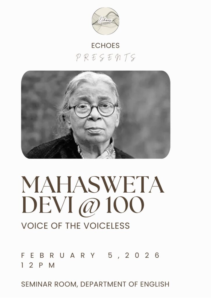 गढ़वाल विश्वविद्यालय में महाश्वेता देवी की जन्म शताब्दी पर साहित्यिक संगोष्ठी अंग्रेजी विभाग एवं इकोज लिटरेरी क्लब के तत्वावधान में होगा आयोजन
