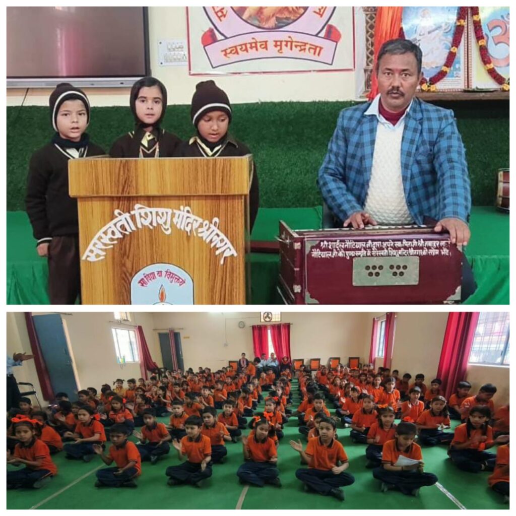 श्रीनगर गढ़वाल। सरस्वती शिशु मंदिर श्रीनगर में बुधवार को श्रीमद्भ भागवत गीता जयंती अत्यंत श्रद्धा,उत्साह और आध्यात्मिक माहौल में मनाई गई। विद्यालय परिसर दिनभर गीता के दिव्य संदेशों से गुंजायमान रहा। इस पावन अवसर पर गीता पाठ एवं गीता श्लोक वाचन प्रतियोगिता का भव्य आयोजन किया गया,जिसमें विद्यार्थियों ने अद्भुत प्रतिभा और आध्यात्मिक समझ का परिचय दिया। कार्यक्रम के तहत प्रतियोगिता दो चरणों में आयोजित की गई। पहले चरण में कक्षा स्तर पर नन्हे प्रतिभागियों के बीच कड़ा मुकाबला देखने को मिला। जजों ने प्रथम,द्वितीय और तृतीय स्थान प्राप्त करने वाले विद्यार्थियों का चयन किया। दूसरे चरण-जो कि विद्यालय स्तर का मुख्य चरण था। चयनित प्रतिभागियों ने मंच पर आकर गीता के श्लोकों का जो आत्मीय और प्रभावशाली वाचन किया,उसने उपस्थित सभी गुरुजनों और अभिभावकों की वाहवाही लूट ली। मुख्य प्रतियोगिता में कक्षा पंचम की आराध्या पंवार ने प्रथम स्थान प्राप्त कर विद्यालय का नाम रोशन किया। कक्षा चतुर्थ की वंदना द्वितीय स्थान पर रहीं,जबकि कक्षा द्वितीय की नन्ही प्रतिभा कृतिका ने तृतीय स्थान अर्जित किया। कार्यक्रम की सबसे विशेष झलक रही कक्षा प्रथम के छोटे-छोटे भैया-बहनों द्वारा श्रीमद्भ भगवद्गीता के अध्याय 12-भक्ति योग का पूर्ण कंठस्थ पाठ। नन्हे भैया वेदांत जोशी,अध्ययन चमोली और बहन अक्षिता बलोनी ने संपूर्ण 12 वां अध्याय बिना रुके,शुद्ध उच्चारण के साथ सुनाया,जिसे सुनकर पूरा विद्यालय गर्व से भर उठा और हॉल तालियों से गूंज उठा। कार्यक्रम में प्रधानाचार्य गोविंद सिंह सहित वरिष्ठ आचार्य ओमप्रकाश उपाध्याय,योगेंद्र सिंह रमोला,शिशुपाल सिंह भंडारी,गजपाल सिंह,कपिल पाल,किरण पंवार,चंद्रेश्वरी सेमवाल,रेखा मलासी,शिवानी गैरोला,अर्चना गैरोला,उपेंद्र सेमवाल व ऊषा बिष्ट सहित अनेक अभिभावक उपस्थित रहे। प्रधानाचार्य गोविंद सिंह ने गीता जयंती के अवसर पर विद्यार्थियों को संबोधित करते हुए कहा गीता वह दिव्य ज्ञान है,जिसने अर्जुन को मोह और भ्रम से मुक्त किया। वही ज्ञान आज हर व्यक्ति के जीवन का मार्गदर्शन बन सकता है। यदि गीता का संदेश जीवन में उतार लिया जाए,तो जीवन के हर संकट का समाधान संभव है। गीता जयंती पर आयोजित यह कार्यक्रम न केवल एक प्रतियोगिता रहा,बल्कि बच्चों में आध्यात्मिक मूल्यों,भारतीय संस्कृति और गीता के महान संदेशों को रोपित करने का एक सार्थक प्रयास भी साबित हुआ। विद्यालय परिवार द्वारा ऐसे आयोजनों से शिक्षा के साथ संस्कारों के समन्वय की मिसाल पेश की जा रही है।