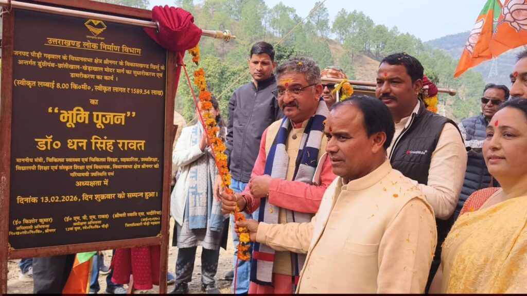 श्रीनगर गढ़वाल। पर्वतीय गांवों की पगडंडियों को विकास की मुख्यधारा से जोड़ने के संकल्प के साथ उत्तराखंड सरकार के कैबिनेट मंत्री डॉ.धन सिंह रावत शुक्रवार को श्रीनगर एवं खिर्सू क्षेत्र के विस्तृत भ्रमण पर रहे। इस दौरान उन्होंने करोड़ों रुपये की लागत से बनने वाली सड़क परियोजनाओं का भूमि पूजन एवं शिलान्यास किया,साथ ही विभिन्न विद्यालयों में पहुंचकर छात्र-छात्राओं को गणवेश वितरित कर उनका उत्साहवर्धन किया। डॉ.रावत ने कहा कि सरकार की पहली प्राथमिकता ग्रामीण क्षेत्र में रहने वाले प्रत्येक व्यक्ति तक मूलभूत सुविधाएं पहुंचाना है। सड़क,स्वास्थ्य,शिक्षा और पेयजल जैसी आवश्यक सेवाओं को सुदृढ़ कर ही गांवों को सशक्त बनाया जा सकता है। 8 किमी सड़क का डामरीकरण,वर्षों पुरानी मांग पूरी खिर्सू के डुंगरीपंथ-छांतीखाल-खेड़ाखाल मोटर मार्ग के सुधारीकरण एवं डामरीकरण कार्य (स्वीकृत लंबाई 8.00 किलोमीटर,लागत 1589.54 लाख) लाख का विधिवत भूमि पूजन किया गया। इसके अतिरिक्त डुंगरीपंथ-छांतीखाल मोटर मार्ग से तल्ली कफोली तक ग्रामीण मोटर मार्ग निर्माण (प्रथम चरण,स्वीकृत धनराशि 156.39 लाख) रुपए का शिलान्यास भी किया गया। मंत्री ने कहा कि यह क्षेत्रवासियों की लंबे समय से लंबित मांग थी। सड़क के डामरीकरण से आसपास के अनेक गांवों को सीधा लाभ मिलेगा। साथ ही सिरोबगड़ में अवरोध की स्थिति में रुद्रप्रयाग और चमोली की ओर जाने वाले यात्रियों एवं तीर्थयात्रियों के लिए यह मार्ग एक सशक्त वैकल्पिक मार्ग सिद्ध होगा। डॉ.रावत ने उच्च प्राथमिक विद्यालय नंदन नगर पालिका तथा राजकीय प्राथमिक विद्यालय डांग में विद्यार्थियों को गणवेश वितरित किए। इसके अलावा फरासू और स्वीत में भी आयोजित कार्यक्रमों में सहभागिता की। उन्होंने कहा कि बच्चों के सर्वांगीण विकास के लिए शिक्षा,स्वास्थ्य,पोषण और गणवेश की समुचित व्यवस्था की जा रही है,ताकि किसी भी विद्यार्थी को संसाधनों के अभाव में पढ़ाई से वंचित न होना पड़े। छात्र-छात्राओं से संवाद करते हुए उन्होंने अनुशासन,आत्मविश्वास और लक्ष्य निर्धारण का संदेश दिया। मंत्री ने बताया कि प्रदेश के 22 हजार विद्यालयों में कुर्सी,टेबल,चारदीवारी,बिजली-पानी जैसी मूलभूत सुविधाओं को सुदृढ़ किया जा रहा है। प्रत्येक विद्यालय को आवश्यकता के अनुसार 5 हजार से 25 हजार रुपये तक की खेल सामग्री उपलब्ध कराई जाएगी तथा पुस्तकालयों की व्यवस्था भी सुनिश्चित की जा रही है। उन्होंने कहा कि आज के दौर में बच्चों को पुस्तकों के साथ कंप्यूटर और कृत्रिम बुद्धिमत्ता की जानकारी भी आवश्यक है। गांव के बच्चों के हाथ में जब कंप्यूटर आता है तो उनका आत्मविश्वास बढ़ता है और भविष्य के नए द्वार खुलते हैं। आंगनबाड़ी केंद्रों के संदर्भ