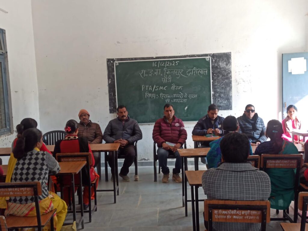पौड़ी/श्रीनगर गढ़वाल। जनपद पौड़ी गढ़वाल के द्वारीखाल विकास खण्ड अंतर्गत समग्र शिक्षा अभियान के तहत राजकीय इंटर कॉलेज किनसुर में एसएमसी एवं पीटीए की एक महत्वपूर्ण संयुक्त बैठक आयोजित की गई। बैठक का मुख्य उद्देश्य पहाड़ी क्षेत्रों में बढ़ते जंगली जानवरों के हमलों से छात्र-छात्राओं की सुरक्षा सुनिश्चित करना तथा आगामी प्री-बोर्ड,बोर्ड एवं वार्षिक परीक्षाओं की प्रभावी तैयारी को लेकर अभिभावकों को जागरूक करना रहा। बैठक में संकुल क्षेत्र के बागी,तैड़ी,पोगठा,हतनूड़,मैठाणा एवं उमन सहित आसपास के गांवों से विद्यालय आने वाले बच्चों के अभिभावकों की सहभागिता रही। एसएमसी द्वारा अभिभावकों से अपील की गई कि बच्चे विद्यालय आते-जाते समय समूह में चलें,ताकि किसी भी आकस्मिक स्थिति में सुरक्षा सुनिश्चित की जा सके। क्षेत्र के पूर्व प्रधान दीपचंद शाह ने विशेष रूप से उन बच्चों की ओर ध्यान आकृष्ट किया जिनका मार्ग घने जंगलों से होकर गुजरता है। उन्होंने ऐसे अभिभावकों से आग्रह किया कि वे बच्चों को कुछ दूरी तक स्वयं छोड़ने-लाने की व्यवस्था करें। साथ ही उन्होंने जंगली जानवरों से बचाव एवं जागरूकता हेतु सरकार द्वारा संचालित विभिन्न योजनाओं की जानकारी दी और ग्राम पंचायत की ओर से हर संभव सहयोग का भरोसा दिलाया। विद्यालय के प्रधानाचार्य गोपाल सिंह ने अभिभावकों से समय-समय पर विद्यालय आकर बच्चों की पढ़ाई से जुड़ी समस्याओं पर संवाद करने का आह्वान किया। उन्होंने कहा कि विद्यालय और अभिभावकों के बीच निरंतर समन्वय से ही बच्चों की शैक्षणिक प्रगति के साथ-साथ उनकी सुरक्षा भी सुनिश्चित की जा सकती है। बैठक में उपस्थित शिक्षकों ने भी बच्चों की सुरक्षा,नियमित उपस्थिति,अध्ययन अनुशासन और परीक्षाओं की तैयारी को लेकर अपने-अपने सुझाव रखे। शिक्षकों ने अभिभावकों से आग्रह किया कि वे घर पर भी बच्चों के अध्ययन के लिए सकारात्मक वातावरण बनाएं और उनकी दिनचर्या पर ध्यान दें। इस अवसर पर शिक्षक सुरेश चन्द्र भट्ट,मलखान सिंह,ऋचा ध्यानी सहित अन्य गणमान्य लोग उपस्थित रहे। बैठक सौहार्दपूर्ण वातावरण में सम्पन्न हुई और अभिभावकों-विद्यालय के साझा प्रयासों से बच्चों की सुरक्षा व शैक्षिक गुणवत्ता को और मजबूत करने का संकल्प लिया गया।