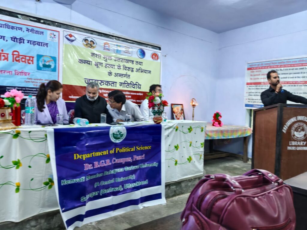 पौड़ी/श्रीनगर गढ़वाल। डॉ.बीजीआर परिसर एचएनबी गढ़वाल विश्वविद्यालय पौड़ी में 15 सितम्बर को अंतर्राष्ट्रीय लोकतंत्र दिवस के अवसर पर एक विशेष कार्यशाला का आयोजन किया गया। इस अवसर पर वक्ताओं ने लोकतंत्र की महत्ता,नागरिक जिम्मेदारियों और सामाजिक समस्याओं पर विचार साझा किए। कार्यक्रम का अध्यक्षीय भाषण प्रो.उमेश चंद्र गैरोला निदेशक डॉ.बीजीआर परिसर ने दिया। उन्होंने कहा कि यह हमारा सौभाग्य है कि हम एक लोकतांत्रिक देश में रहते हैं,जहां हमें अपने विचार रखने और निर्णय प्रक्रिया में भाग लेने का अवसर मिलता है। उन्होंने छात्रों को प्रोत्साहित करते हुए कहा कि लोकतांत्रिक व्यवस्था को सशक्त बनाने के लिए नागरिकों को शिकायत पोर्टल्स और विभिन्न ऑनलाइन प्लेटफॉर्म्स का सही उपयोग करना चाहिए,ताकि प्रशासनिक समस्याओं का समाधान शीघ्र हो सके। मुख्य वक्ता सिविल जज नाजिश कलीम ने कहा कि लोकतंत्र तभी सशक्त बनता है जब नागरिक जागरूक और जिम्मेदार हों। उन्होंने युवाओं से अपील की कि वे समाज की समस्याओं को समझें और सक्रिय भूमिका निभाएं। डॉ.आशिष गुसाईं ने नशे की समस्या को एक मानसिक बीमारी बताते हुए कहा कि जब किसी व्यक्ति को नशे की इतनी लत लग जाए कि वह स्वयं को नियंत्रित न कर पाए,तो उसे बीमार की श्रेणी में रखा जाना चाहिए। उन्होंने यह भी बताया कि ऐसे लोगों के लिए डि-एडिक्शन सेंटर मौजूद हैं और परिवार तथा समाज के सहयोग से नशा छुड़ाना संभव है। डॉ.शशांक उनियाल ने Pre-Contemplation,Contemplation और Action जैसी अवस्थाओं पर विस्तार से चर्चा की और युवाओं से स्वस्थ जीवनशैली अपनाने का आह्वान किया। कुसुम नेगी ने नशे के व्यक्तिगत,सामाजिक,आर्थिक एवं उपलब्धता से जुड़े कारणों पर प्रकाश डाला और कहा कि प्रशासन उपलब्धता को कम करने के लिए निरंतर प्रयासरत है। प्रो.अनुप डोबरियाल ने अपने संदेश में भारतीय संविधान की महत्ता और मतदान के अधिकार के उपयोग पर विशेष जोर दिया। उन्होंने कहा कि लोकतंत्र में प्रत्येक नागरिक का मत अमूल्य है और इसका सही उपयोग ही एक जिम्मेदार नागरिक का कर्तव्य है। प्रवीण रावत एसआई पौड़ी गढ़वाल ने युवाओं को नशे से दूर रहने और नागरिक अधिकारों के प्रति सजग रहने की सलाह दी। उन्होंने साइबर क्राइम,विशेषकर फाइनेंशियल फ्रॉड के खतरों पर चर्चा की और कहा कि लोकतांत्रिक समाज में जागरूक नागरिक ही सशक्त राष्ट्र का निर्माण कर सकते हैं। कार्यक्रम का संचालन डॉ.मनोज कुमार सहायक आचार्य राजनीति विज्ञान विभाग ने किया और धन्यवाद ज्ञापन डॉ.अतुल सैनी,सहायक आचार्य,भूगोल विभाग द्वारा प्रस्तुत किया गया। कार्यक्रम में प्रो.रिहाना जैदी,प्रो.अनूप पांडेय,प्रो.रेखा नेथानी,डॉ.पुनम बिष्ट,डॉ.धर्मेन्द्र,डॉ.विपुल,डॉ.अनिल दत्त,डॉ.सपना रावत,डॉ.जया उ