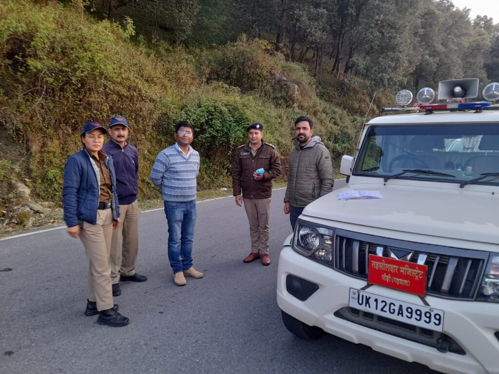 देवप्रयाग मार्ग पर राजस्व,परिवहन और पुलिस विभाग ने संयुक्त रूप से चलाया सघन चेकिंग अभियान