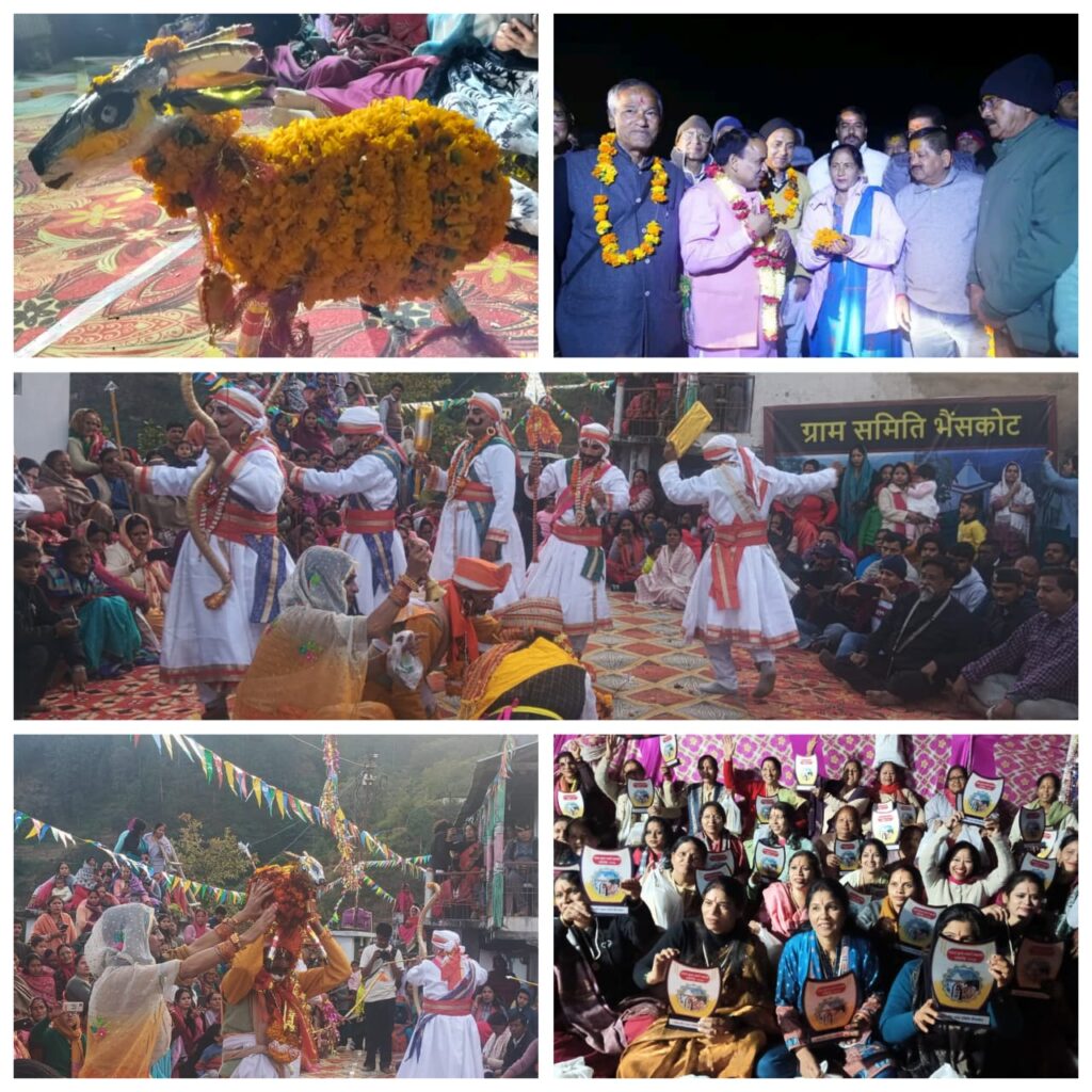 श्रीनगर गढ़वाल। आज 6 दिसम्बर 2025 को जनपद पौड़ी गढ़वाल के विकास खण्ड खिर्सू के अन्तर्गत ग्राम-भैसकोट में पांच दिवसीय पांडव लोकनृत्य गैंडी का हुआ समापन। गंगावतरण की पावन वादियों में बसी देवभूमि उत्तराखण्ड की लोक संस्कृति,परंपरा और आस्था का अद्भुत संगम शनिवार को ग्रामसभा भैसकोट में देखने को मिला। पौराणिक लोकनृत्य पांडव गैंडी की 50 वीं गोल्डन जुबली महोत्सव का समापन आज अत्यंत भव्य और गरिमामयी वातावरण में सम्पन्न हुआ। पारंपरिक वाद्ययंत्रों ढोल-दमाऊं की थाप,कलाकारों के जोशीले नृत्य,और ध्याणियों के सम्मान ने इस आयोजन को यादगार बना दिया। कार्यक्रम के मुख्य अतिथि उत्तराखण्ड सरकार के कैबिनेट मंत्री डॉ.धन सिंह रावत ने अपने उद्बोधन में कहा कि पांडव गैंडी केवल एक नृत्य भर नहीं,बल्कि हमारी सांस्कृतिक पहचान और सामूहिक विरासत है। यह महोत्सव स्थानीय आस्था,परंपरा और लोक जीवन का अनुपम उत्सव है,जो नई पीढ़ी को अपनी जड़ों से जोड़ता है। उन्होंने आयोजन समिति व ग्रामीणों और कलाकारों के उत्साह व सांस्कृतिक समर्पण की सराहना की। इस अवसर पर विकास खंड खिर्सू के ब्लॉक प्रमुख अनिल भण्डारी,भाजपा जिलाध्यक्ष कमल किशोर रावत,हरिद्वार मेडिकल कॉलेज के प्राचार्य डॉ.सीएमएस.रावत,पूर्व जिला पंचायत सदस्य लखपत सिंह भण्डारी,खिर्सू प्रधान संगठन के पूर्व अध्यक्ष बृजमोहन बहुगुणा,वरिष्ठ समाजसेवी शीशपाल सिंह असवाल (बबलू) समेत अनेक गणमान्यजन उपस्थित रहे। उत्तराखंड की समृद्ध ध्याणी संस्कृति को जीवंत करते हुए आयोजन समिति और ग्रामवासियों की ओर से 145 विवाहित ध्याणियों को सम्मान पूर्वक मैत भेंट प्रदान की गई। उन्हें पारंपरिक पहाड़ी मिठाई रोट-अरसा तथा स्मृति चिन्ह भेंट में दिए गए। यह परंपरा उत्तराखंड की उस अनोखी रीति को दर्शाती है जिसमें ध्याणियों के मायके आने को सौभाग्य माना जाता है और उनके द्वारा कुल देवताओं से परिवार की समृद्धि की कामना की जाती है। भैसकोट और आसपास के दूरस्थ प्रवासी व ग्रामीण बड़ी संख्या में इस सांस्कृतिक पर्व के साक्षी बने। ग्रामसभा भैसकोट की प्रधान सुनीता देवी नयाल,सरपंच जयकृत सिंह नयाल,सचिव देवेंद्र भण्डारी,अरुणेंद्र नयाल,आशुतोष नयाल,कर्नल जमन सिंह नयाल,दिनबन्धु नयाल,अनिल नयाल,सरोफ सिंह,जगमोहन सिंह,राकेश नयाल,योगेन्द्र सिंह नयाल,शैलेन्द्र नयाल,प्रदीप नयाल,हिम्मत सिंह,मातवर सिंह रावत,धर्म सिंह रौतेला,अनिल नयाल,उमेश नयाल,शैलेन्द्र नयाल,पूर्व प्रधान रणवीर लाल सहित अनेक युवाओं एवं वरिष्ठ नागरिकों ने आयोजन की सफलता में महत्वपूर्ण भूमिका निभाई। नवयुवक मंगल दल,महिला मंगल दल तथा समस्त भैसकोट वासियों ने मिलकर इस पर्व को भव्य रूप दिया। परंपरा के संरक्षण हेतु उनका यह योगदान आने वाली