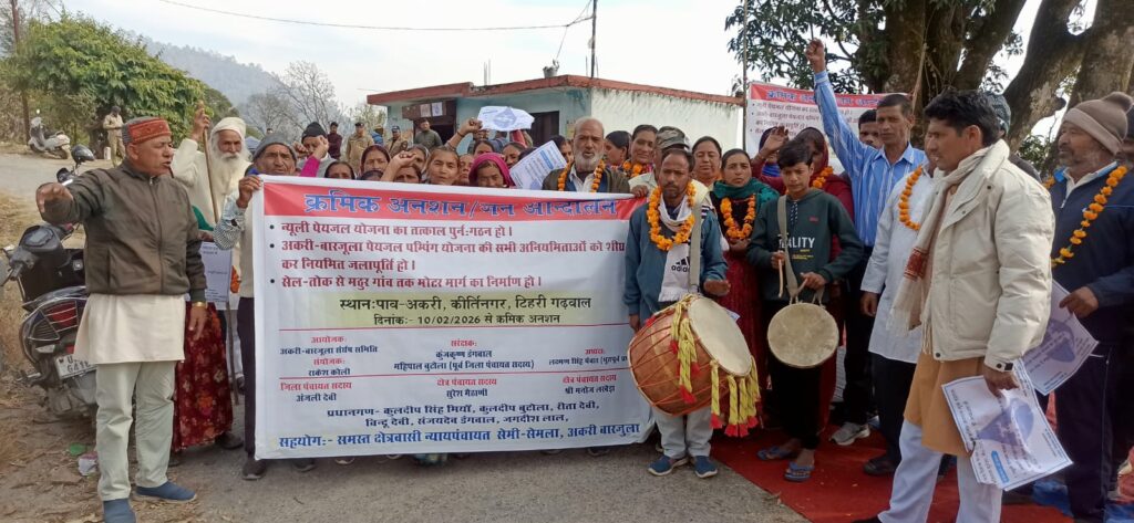 कीर्तिनगर/श्रीनगर गढ़वाल। कीर्तिनगर विकासखंड के पाव अकरी गांव में वर्षों से चली आ रही पेयजल एवं सड़क समस्या के समाधान न होने से आक्रोशित ग्रामीणों का आंदोलन अब निर्णायक मोड़ पर पहुंच गया है। समस्याओं की लगातार अनदेखी से क्षुब्ध ग्रामीणों ने मंगलवार से क्रमिक अनशन शुरू कर दिया। आंदोलनकारी ग्रामीणों ने प्रदेश के मुख्यमंत्री तथा क्षेत्रीय विधायक से तत्काल हस्तक्षेप कर क्षेत्र में मूलभूत सुविधाएं बहाल करने की मांग की है। ग्रामीणों का कहना है कि क्षेत्र में निर्मित अकरी-बारजूला पेयजल पम्पिंग योजना में व्यापक अनियमितताएं एवं कथित भ्रष्टाचार हुआ है,जिसके चलते यह योजना प्रभावी रूप से संचालित नहीं हो पा रही है। पाइपलाइन बिछी होने के बावजूद गांव में नियमित जलापूर्ति ठप पड़ी है,जिससे ग्रामीणों को भारी कठिनाइयों का सामना करना पड़ रहा है। आंदोलनकारी ग्रामीणों ने मुख्यमंत्री से मांग की है कि अकरी*बारजूला पेयजल पम्पिंग योजना की तत्काल उच्चस्तरीय जांच कराई जाए तथा दोषी अधिकारियों और ठेकेदारों के विरुद्ध कड़ी कार्रवाई सुनिश्चित की जाए। ग्रामीणों का आरोप है कि योजना के टैंक जर्जर अवस्था में पड़े हैं और विभागीय लापरवाही के कारण करोड़ों की योजना दम तोड़ चुकी है। धरना-प्रदर्शन में उठी सड़क और पुनर्गठन की मांग विक्रम सिंह की अध्यक्षता में आयोजित धरना-प्रदर्शन के दौरान वक्ताओं ने सरकार से पानी और सड़क की समस्या का स्थायी समाधान करने की मांग की। इस अवसर पर पूर्व जिला पंचायत सदस्य महिपाल बुटोला ने कहा कि न्यूली पेयजल योजना का पुनर्गठन कर गांवों में नियमित जलापूर्ति सुनिश्चित की जाए,साथ ही अकरी-बारजूला पेयजल पम्पिंग योजना में हुई सभी अनियमितताओं की जांच कर शीघ्र सुधारात्मक कदम उठाए जाएं। उन्होंने सेल-तोक से मठुर गांव तक मोटर मार्ग निर्माण की मांग को भी प्रमुखता से उठाते हुए कहा कि सड़क के अभाव में ग्रामीणों को आपात स्थिति में भी भारी परेशानी झेलनी पड़ रही है। महिपाल बुटोला ने कहा कि ग्रामीण लंबे समय से प्रशासन और जनप्रतिनिधियों के समक्ष अपनी समस्याएं उठाते आ रहे हैं,लेकिन अब तक कोई ठोस कार्रवाई नहीं हुई। यदि शीघ्र समाधान नहीं हुआ तो आंदोलन को और तेज करते हुए भूख-हड़ताल शुरू की जाएगी,जिसकी पूरी जिम्मेदारी प्रशासन की होगी। पहले दिन 11 ग्रामीण बैठे अनशन पर क्रमिक अनशन के पहले दिन जगदीश प्रसाद डंगवाल,सुशील चन्द्र मैठाणी,प्रकाश लखेड़ा,बुद्धि सिंह नेगी,बीना कोहली,विमला देवी,सजना देवी,सुदामा देवी,राजेन्द्र सिंह रावत,लक्ष्मण सिंह पंवार और सुरजदास अनशन पर बैठे। इस दौरान अकरी बारजूला संघर्ष समिति के संयोजक राकेश कोली,जिला पंचायत सदस्य अंजली देवी,संरक्षक कुंजकृष्ण डंगवाल,क
