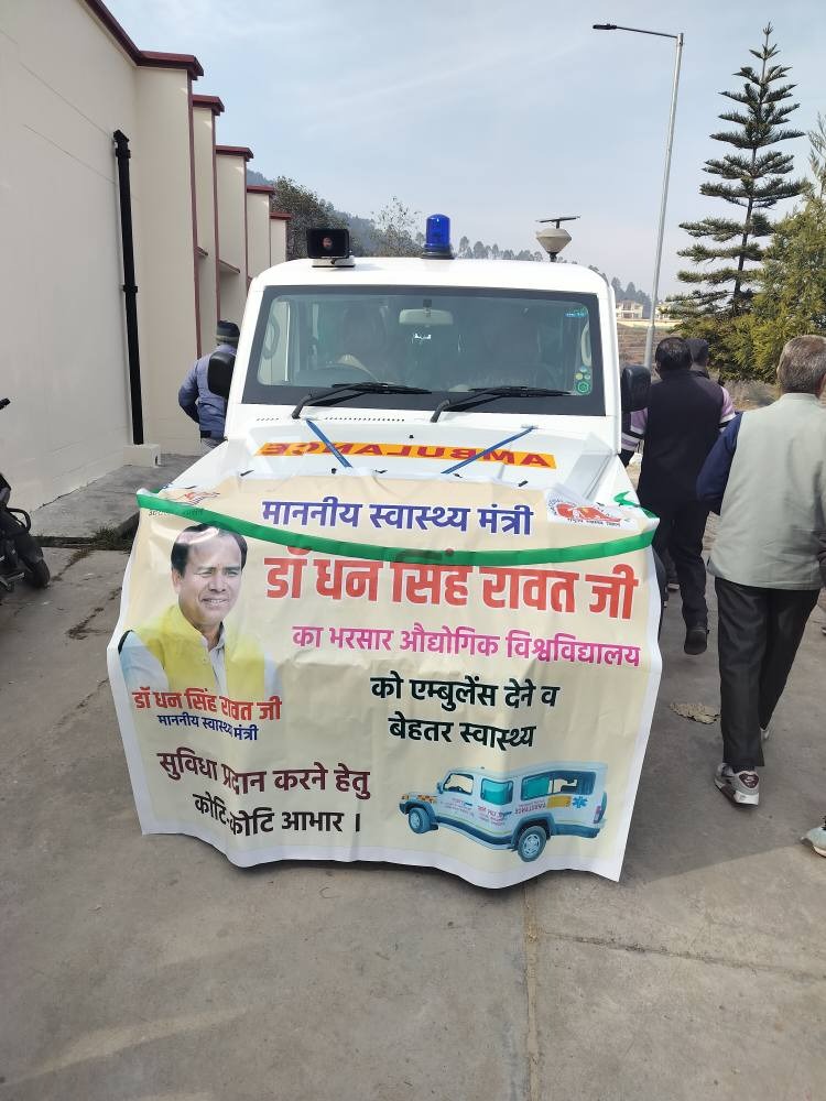 हिमालय टाइम्स गबर सिंह भण्डारी पौड़ी/श्रीनगर गढ़वाल। उत्तराखंड सरकार के कैबिनेट मंत्री डॉ.धन सिंह रावत ने वीर चंद्र सिंह गढ़वाली औद्यानिकी एवं वानिकी विश्वविद्यालय,भरसार को एक अत्याधुनिक एम्बुलेंस प्रदान कर विश्वविद्यालय की आपातकालीन स्वास्थ्य