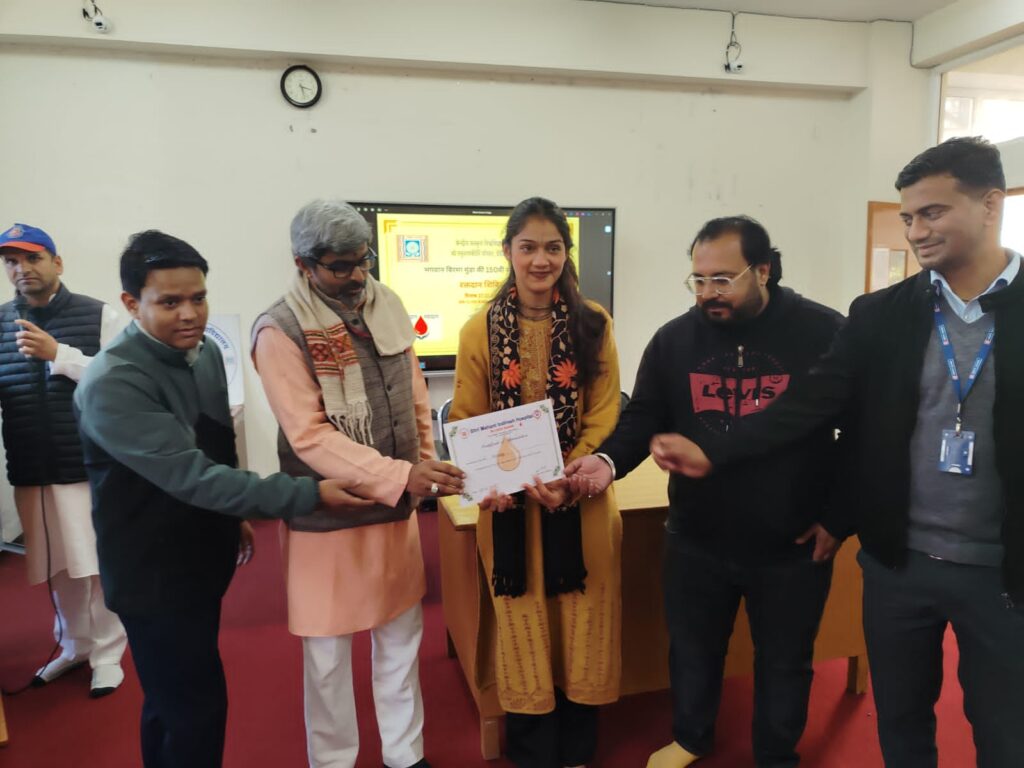 देवप्रयाग/श्रीनगर गढ़वाल। केंद्रीय संस्कृत विश्वविद्यालय श्री रघुनाथ कीर्ति परिसर में भगवान् बिरसा मुंडा की जयंती पर रक्तदान शिविर का आयोजन किया गया। 80 यूनिट रक्त एकत्र कर श्री महंत अस्पताल देहरादून को दिया गया। रक्तदान का शुभारंभ निदेशक प्रो.पीवीबी सुब्रह्मण्यम ने रक्तदान कर किया। कार्यक्रम का संयोजन एनएसएस इकाई के तत्त्वावधान में एनएनएस कार्यक्रम अधिकारी डॉ.सुरेश शर्मा के मार्गदर्शन में किया गया। परिसर के छात्रों,अध्यापकों तथा छात्रों ने रक्तदान किया। रक्तदाताओं को प्रमाण पत्र वितरित करते हुए निदेशक प्रो.सुब्रह्मण्यम ने कहा कि एक स्वस्थ व्यक्ति साल में चार बार रक्त दे सकता है। यह किसी के दबाव में किया जाने वाला कार्य नहीं,बल्कि स्वत:स्फूर्त प्रेरणा और सेवा भाव है। एक बार रक्त देने के बाद फिर से खून बन जाता है। इससे नुकसान नहीं,फायदा ही होता है। उन्होंने कहा कि श्रीमहंत अस्पताल के साथ परिसर के कर्मचारियों और छात्रों की स्वास्थ्य जांच और चिकित्सा को लेकर परिसर की ओर से एमओयू किया जाएगा। कार्यक्रम के आयोजन में एचडीएफसी बैंक परिवर्तन ने मुख्य भूमिका निभाई। इस अवसर पर एचडीएफसी से धर्मेन्द्र सिंह रावत,भुवनेश कुमार सिंह,रोहित शर्मा,अमित कुमार,सोहन सिंह तथा श्रीमहंत इंद्रेश अस्पताल से मोहित चावला,दामिनी रावत और कविता आदि उपस्थित थे।