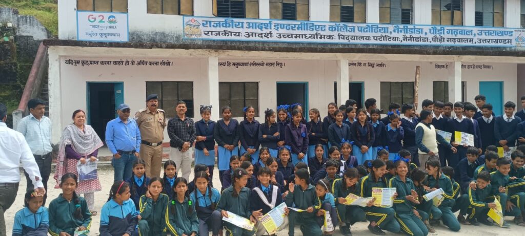 पौड़ी/श्रीनगर गढ़वाल। जनपद पौड़ी गढ़वाल के विकासखंड नैनीडांडा स्थित राजकीय आदर्श इंटर कॉलेज पटोटिया में थाना धुमाकोट पुलिस द्वारा विद्यार्थियों के बीच एक विशेष जागरूकता पाठशाला का आयोजन किया गया। कार्यक्रम का उद्देश्य छात्र-छात्राओं को साइबर अपराधों से बचाव,नशे के दुष्प्रभावों और सोशल मीडिया के सुरक्षित उपयोग के प्रति जागरूक करना था। पुलिस टीम ने छात्रों को बताया कि इंटरनेट पर बढ़ते साइबर अपराधों से सावधान रहना अत्यंत आवश्यक है। उन्होंने समझाया कि किसी भी अज्ञात लिंक,फर्जी कॉल,ई-मेल या संदिग्ध वेबसाइट पर व्यक्तिगत जानकारी साझा न करें। ओटीपी,बैंक डिटेल्स और पासवर्ड को किसी के साथ साझा करना साइबर ठगी का मुख्य कारण है। साइबर अपराध होने की स्थिति में छात्र तुरंत राष्ट्रीय हेल्पलाइन नंबर 1930 पर शिकायत कर सकते हैं। कार्यक्रम में पुलिस टीम ने युवाओं को नशे के शारीरिक,मानसिक और सामाजिक दुष्प्रभावों के बारे में विस्तार से बताया। छात्रों से आह्वान किया गया कि वे नशा मुक्त समाज के निर्माण में अपनी सक्रिय भूमिका निभाएं और नशे के विरुद्ध जागरूकता फैलाने में भाग लें। टीम ने विद्यार्थियों को सोशल मीडिया पर फेक आईडी बनाने,अफवाह फैलाने,निजी जानकारी साझा करने और भ्रामक पोस्ट करने के खतरों से भी अवगत कराया। साथ ही बताया गया कि सोशल मीडिया एक सशक्त माध्यम है,यदि इसे सकारात्मक सोच,शिक्षा और जनसेवा के लिए उपयोग किया जाए तो यह समाज में परिवर्तन का बड़ा जरिया बन सकता है। छात्र-छात्राओं को सुरक्षा एवं सहायता से जुड़े प्रमुख हेल्पलाइन नंबर याद रखने की अपील की गई महिला हेल्पलाइन-1090,चाइल्ड हेल्पलाइन-1098,पुलिस सहायता-112,साइबर क्राइम हेल्पलाइन-1930। पुलिस टीम ने कहा कि आपात स्थिति में इन नंबरों पर तुरंत संपर्क करना कानूनी और सुरक्षा सहायता प्राप्त करने का सबसे त्वरित माध्यम है। कार्यक्रम के अंत में छात्रों ने यह संकल्प लिया कि वे नशे से दूर रहेंगे,साइबर अपराधों से स्वयं को सुरक्षित रखेंगे और अपने आस-पास के लोगों को भी जागरूक करेंगे। विद्यालय प्रशासन ने थाना धुमाकोट पुलिस टीम का आभार व्यक्त करते हुए कहा कि इस प्रकार की जागरूकता पाठशालाएं विद्यार्थियों के जीवन में सुरक्षा,अनुशासन और जिम्मेदारी की भावना विकसित करती हैं।