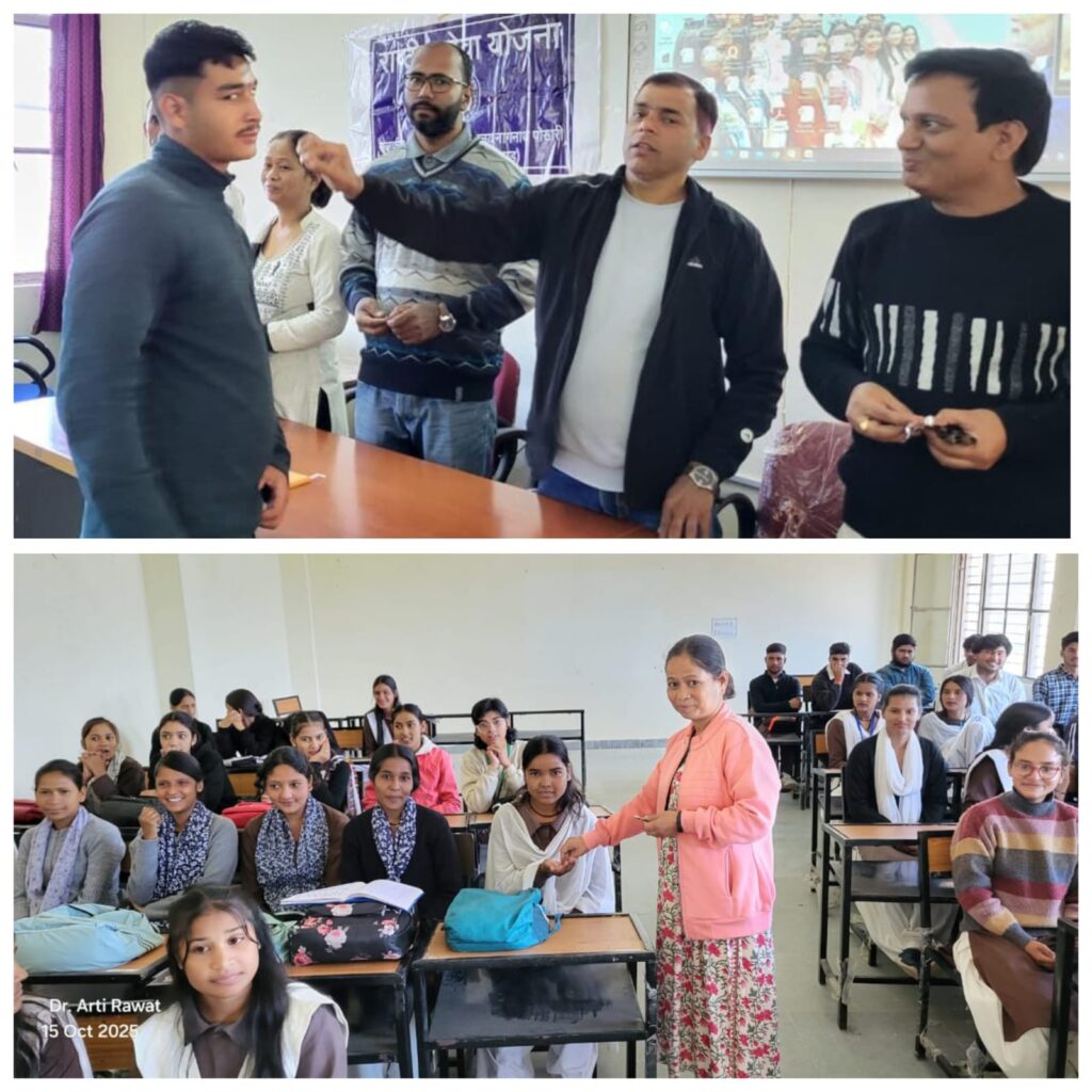 चमोली/श्रीनगर गढ़वाल। हिमंवत कवि चंद्र कुंवर बर्त्वाल राजकीय महाविद्यालय नागनाथ पोखरी में राष्ट्रीय सेवा योजना (एनएसएस) इकाई के तत्वावधान में राष्ट्रीय कृमि मुक्ति दिवस 2025 के अंतर्गत एक विशेष स्वास्थ्य जागरूकता एवं औषधि वितरण कार्यक्रम का आयोजन किया गया। दिनांक 8 अक्टूबर 2025 को आयोजित इस कार्यक्रम में राष्ट्रीय स्वास्थ्य मिशन के तहत चलाए जा रहे पोषण एवं कृमि नियंत्रण अभियान के अंतर्गत महाविद्यालय के छात्र-छात्राओं को एल्बेंडाजोल की दवाई वितरित की गई। वहीं जो छात्र उस दिन अनुपस्थित रहे,उन्हें मॉप-अप राउंड के अंतर्गत 15 अक्टूबर 2025 को दवा दी गई। कार्यक्रम के मुख्य वक्ता एवं महाविद्यालय के वरिष्ठ प्राध्यापक डॉ.नंदकिशोर चमोला ने छात्रों को कृमि संक्रमण के दुष्प्रभावों तथा स्वास्थ्य एवं स्वच्छता के महत्व पर विस्तार से जानकारी दी। उन्होंने बताया कि कृमि संक्रमण बच्चों और युवाओं में कुपोषण,खून की कमी और थकावट का प्रमुख कारण है,जिससे उनके शारीरिक एवं मानसिक विकास पर प्रतिकूल प्रभाव पड़ता है। डॉ.चमोला ने कहा कि स्वच्छता और संतुलित आहार ही स्वास्थ्य की असली कुंजी है। कृमि मुक्त समाज ही स्वस्थ समाज की नींव रख सकता है। इस अवसर पर राष्ट्रीय सेवा योजना इकाई की कार्यक्रम अधिकारी डॉ.आरती रावत ने पूरे आयोजन का सफल संचालन किया। उन्होंने कहा कि एनएसएस के स्वयंसेवक समाज में स्वास्थ्य और स्वच्छता के प्रति जन-जागरूकता फैलाने में महत्वपूर्ण भूमिका निभा सकते हैं। कार्यक्रम में महाविद्यालय के प्राध्यापक डॉ.रेनू सवाल,डॉ.राजेश भट्ट,डॉ.जगजीत सिंह,डॉ.केवलानंद,डॉ.अंशु सिंह,डॉ.शशि चौहान,डॉ.कीर्ति गिल सहित बड़ी संख्या में छात्र-छात्राओं ने उत्साहपूर्वक भाग लिया। अंत में सभी उपस्थित विद्यार्थियों को नियमित स्वास्थ्य जांच,स्वच्छ आदतों और पौष्टिक आहार अपनाने का संकल्प भी दिलाया गया। स्वस्थ विद्यार्थी ही सशक्त राष्ट्र की पहचान हैं-राष्ट्रीय कृमि मुक्ति दिवस ने यही संदेश दिया।