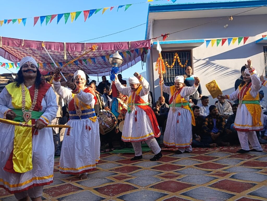 श्रीनगर गढ़वाल। जनपद पौड़ी गढ़वाल के विकासखंड खिर्सू के भैसकोट में धूप-छांव से नहाए पहाड़,सांझ की सुनहरी लाली और ढोल-दमाऊं की रहस्यपूर्ण थापें 5 दिसम्बर को भैसकोट पांडव नृत्य गैण्डी महोत्सव 2025 के अंतर्गत आयोजित देवी प्रज्वलन एवं पांडव नृत्य कार्यक्रम ने समूचे गांव और पूरे क्षेत्र में उत्सव का रंग घोल दिया। स्थानीय ग्रामीणों और श्रद्धालुओं की भारी उपस्थिति में आयोजित युवा पारंपरिक आयोजन संस्कृति,आस्था और लोकनृत्य का मनभावन संगम बन गया और एक पवित्र आध्यात्मिक आभा से भर दिया। संस्कृति,लोककला और आस्था का ऐसा अनूठा संगम कम ही देखने को मिलता है। सांझ ढलते ही महिलाओं ने पारंपरिक वेशभूषा में मंगल गीत गाए और देवी प्रज्वलन की प्राचीन परंपरा को जीवंत किया। दीपों की लौ जब हवा में थिरकी तो लगा मानो सम्पूर्ण गांव देवी शक्ति के दिव्य स्पंदन से अधिष्ठित हो उठ गया हो। इस पावन क्षण ने कार्यक्रम को ऐसी ऊंचाई दी कि दर्शक भी भक्ति के भाव में डूबते चले गए। पांडव नृत्य ने मोह लिया दर्शकों का मन-गाथाओं की सजीव प्रस्तुति। देवी पूजन के बाद मंच सजा पौराणिक गाथाओं का पांडव नृत्य जब भीष्म पितामह की बाण शैया,अभिमन्यु के शौर्य,हनुमान के पराक्रम और नारायण भगवान के दिव्य स्वरूप जैसे प्रसंगों को जीवंत किया,तो दर्शक भाव-विभोर हो उठे। कलाकारों का अभिनय,अंग-संचालन,वेशभूषा और संगीत का समन्वय इतना सशक्त था कि कई क्षणों में लगा मानो महाभारत की कथा साक्षात मंच पर उतर आई हो। द्रौपदी छांदण-दर्द,शक्ति और गरिमा का अद्वितीय संगम,संध्या का सबसे संवेदनशील,हृदय को भेदने वाला क्षण रहा द्रौपदी छांदण। कलाकार ने द्रौपदी के अपार धैर्य,अपमान और फिर देवी कृपा से प्राप्त गौरव को जिस तरह प्रस्तुत किया,उससे वातावरण कुछ पल के लिए स्तब्ध हो गया। दर्शकों के चेहरों पर गहन भाव दिखाई दिए-यह प्रस्तुति कला नहीं,एक अनुभूति बनकर सामने आई। कार्यक्रम के अंत में पांडवों का ग्रामीणों से स्नेहिल मिलन दर्शनीय था। बच्चे उमंग से भरकर पांडवों के चरणों से आशीष लेते दिखे,वहीं बुजुर्गों ने आशीर्वाद देते हुए इस परंपरा को संस्कृति का जीवंत धन बताया। इस पूर्ण आयोजन में गांव का हर घर,हर परिवार और हर बुजुर्ग जैसे सहभागी बन गया। ढोल की थाप,किणकिणाती च्यंग और पांडव नृत्य के घुमक न सिर्फ माहौल को ऊर्जा से भरते रहे,बल्कि पहाड़ की प्राचीन सांस्कृतिक धरोहर को पुनः उजागर करने का श्रेष्ठ संदेश भी देते रहे। नई पीढ़ी में संस्कार,पुरानी पीढ़ी में गर्व का संचार,यह आयोजन सिर्फ मनोरंजन का नहीं बल्कि संस्कृति के संरक्षण और पीढ़ियों को जोड़ने का जीवंत मंच बना। बच्चों ने अपनी संस्कृति को बहुत करीब से देखा,बुजुर्गों ने अपने समय की परंपराओं को फिर से जी लिया।