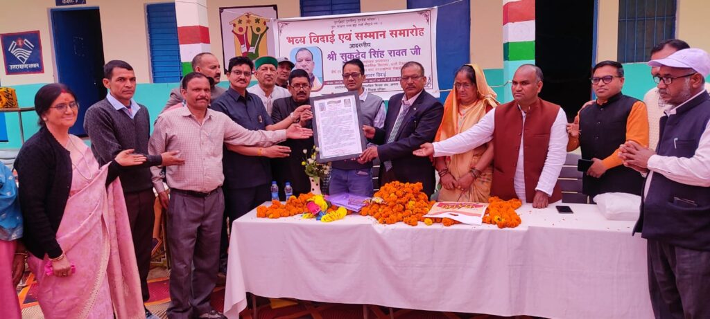 शिक्षक संघ के वरिष्ठ प्रांतीय उपाध्यक्ष सुखदेव सिंह रावत की सेवानिवृत्ति पर शिक्षकों ने विदाई समारोह आयोजित कर दी भावभीनी विदाई