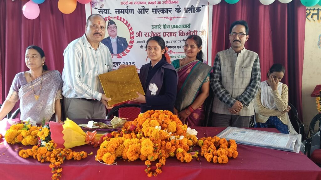 श्रीनगर गढ़वाल। कारगिल शहीद कुलदीप सिंह राजकीय इंटर कॉलेज खण्डाह के प्रतिष्ठित प्रधानाचार्य राजेन्द्र प्रसाद किमोठी को उनके दीर्घ,अनुकरणीय एवं प्रेरणादायी शैक्षणिक योगदान के लिए विद्यालय प्रबंधन समिति एवं अभिभावक-शिक्षक संघ की ओर से सम्मानित किया गया। यह सम्मान समारोह विद्यालय प्रांगण में अत्यंत गरिमामय वातावरण में आयोजित किया गया,जहां शिक्षकों,अभिभावकों,पूर्व विद्यार्थियों और गणमान्य नागरिकों ने बड़ी संख्या में उपस्थिति दर्ज की। अध्यक्ष बीना गुंसाई एवं सदस्य मनोज बिष्ट ने संयुक्त रूप से कहा कि राजेन्द्र प्रसाद किमोठी न केवल एक कुशल शिक्षक बल्कि एक दूरदर्शी प्रशासक, मार्गदर्शक और विद्यार्थियों के जीवन में उजाला भरने वाले सच्चे गुरु हैं। उनकी कार्यशैली ने न केवल विद्यालय को नई ऊंचाइयों तक पहुंचाया बल्कि खण्डाह क्षेत्र में शिक्षा के स्तर को नई दिशा दी है। उन्होंने कहा कि किमोठी जी का व्यक्तित्व विनम्रता,सरलता,अनुशासन और नैतिक मूल्यों का अद्भुत संगम है। 36 वर्षों की सेवा यात्रा में उन्होंने सदैव गुरु-परंपरा का सम्मान करते हुए विद्यार्थियों के समग्र विकास को प्राथमिकता दी। उनकी वक्तृत्व-कला,निर्णय क्षमता और नेतृत्व गुणों ने विद्यालय को एक आदर्श संस्थान के रूप में स्थापित किया है। समारोह में बच्चों ने रंगारंग सांस्कृतिक प्रस्तुतियों के माध्यम से अपने प्रिय प्रधानाचार्य के प्रति आभार और स्नेह प्रकट किया। कार्यक्रम के दौरान किमोठी जी को शाल,स्मृति चिन्ह एवं उपहार भेंट कर सम्मानित किया गया। सम्मान ग्रहण करते हुए विनम्र भाव से प्रतिक्रिया देते हुए राजेन्द्र प्रसाद किमोठी ने कहा यह सम्मान मेरा नहीं बल्कि मेरे सभी साथियों,विद्यार्थियों और अभिभावकों की साझा उपलब्धि है। शिक्षा केवल ज्ञान देने का नहीं,बल्कि समाज को संस्कारवान बनाने का माध्यम है,यही मेरे जीवन का उद्देश्य रहा है। इस अवसर पर क्षेत्र के अनेक गणमान्य व्यक्ति विक्रम सिंह नेगी,दलवीर सिंह शाह,हेमचन्द्र ममगाई,भाष्करानंद गौड़,महेश गिरी,भगवती प्रसाद गौड़,कुंज बिहारी सकलानी, लक्ष्मी सेन, सुनीता आर्य,अनीता देवी,जसपाल सिंह बिष्ट,राजवीर सिंह बिष्ट,कुसुमलता थपलियाल,श्याम सिंह बब्बू सहित बड़ी संख्या में अभिभावक उपस्थित रहे। सभी ने सर्वसम्मति से कहा कि राजेन्द्र प्रसाद किमोठी जैसे समर्पित शिक्षकों की बदौलत ही ग्रामीण क्षेत्रों में शिक्षा का दीपक निरंतर प्रज्वलित है।