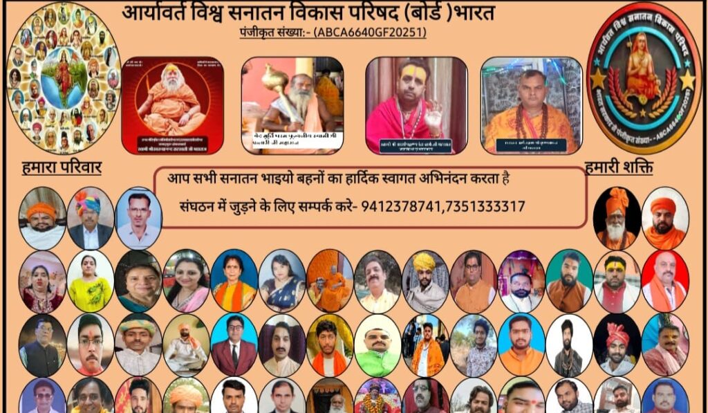 जब कोई राष्ट्र अपनी सांस्कृतिक चेतना से जुड़ता है, तभी वह संगठित, सशक्त और समरस बनता है। इसी उद्देश्य को लेकर आर्यावर्त विश्व सनातन विकास परिषद एक राष्ट्रव्यापी सनातन जागरण अभियान चला रही है, जिसका संकल्प है — “हर दिल में सनातन, हर गांव में धर्म चेतना।”
